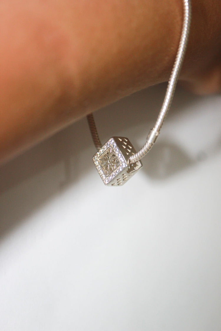 Bracelete Porta Berloques Cravejado em Prata 925